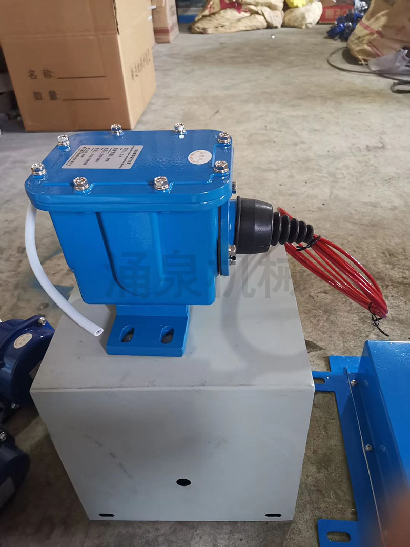 當膠帶運輸現(xiàn)場發(fā)生緊急事故時,拉動系在吊耳上的航空鋼絲繩,使機內(nèi)的滑塊與開關作用,發(fā)出停機信號。松開鋼絲繩后,操作自鎖杠開關自動復位